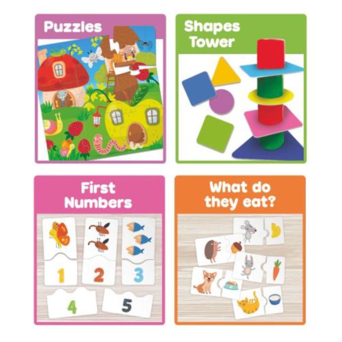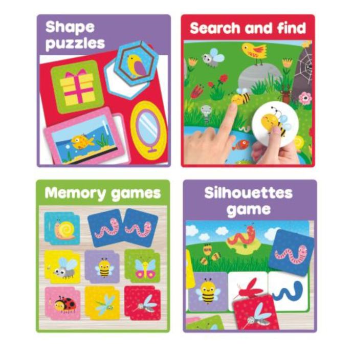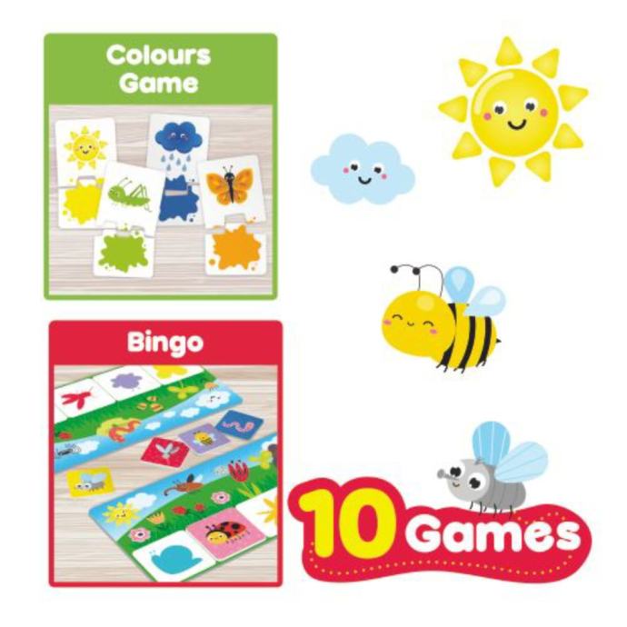 Igra 10 u 1 nudi bogat izbor edukativnih igara koje pomažu u razvoju logičkog razmišljanja, fine motorike, zapažanja, opipa i mnogo više...
