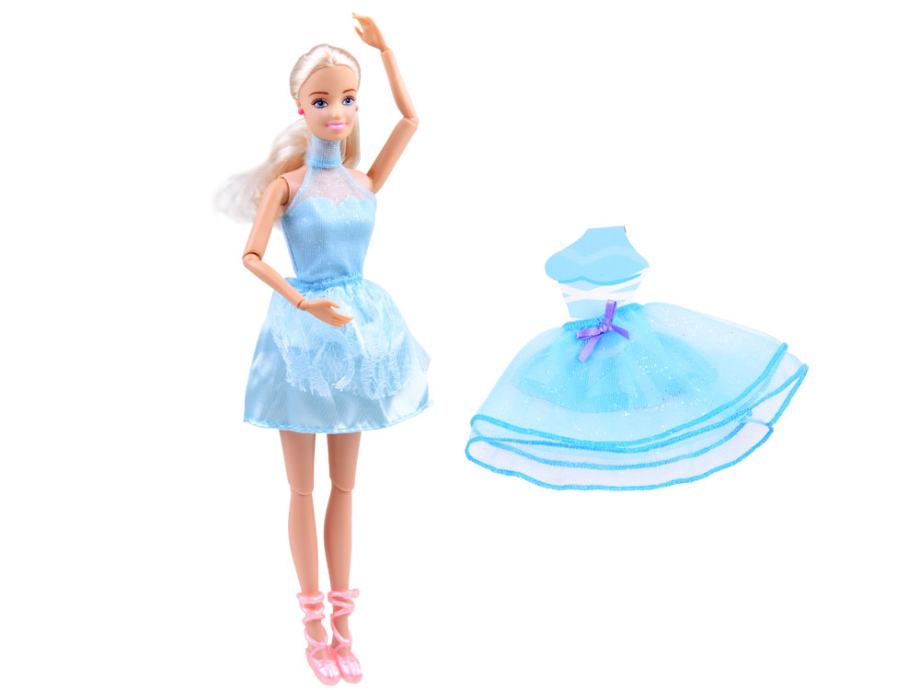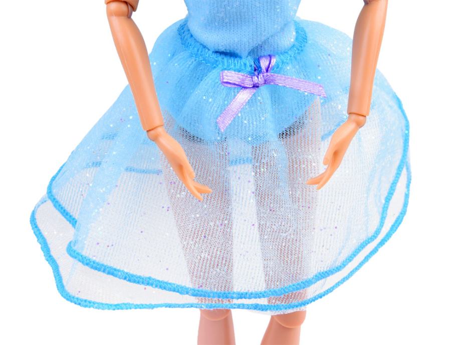 Anlily, elegantna lutka duge plave kose, odjevena u predivnu plavu haljinu, oduševit će svaku djevojčicu. Lutka ima savijene udove u laktovima, koljena su odlična za glumu plesačice, balerine. Uz haljinu, lutka u kompletu ima i dodatnu suknju od brokata, a lutkina stopala krase ljupke roze balerinke.