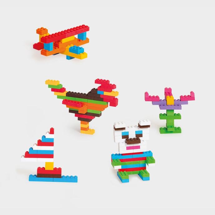 Stigle su kockice koje su sva djeca čekala! Izgledom podsjećaju na klasične kocke za slaganje, ali su izrađene od mekanog i fleksibilnog materijala što igru čini iznimno ugodnom, sigurnom i tihom. Tekstura kockica doprinosi razvoju osjeta dodira, a raznoliki oblici omogućuju stvaranje različitih oblika prema knjižici inspiracija uključenoj u setu ili prema djetetovim vlastitim zamislima. Set se sastoji od 210 kockica. Razvija kreativnost, psihomotoriku i potiče djecu na logičko razmišljanje.