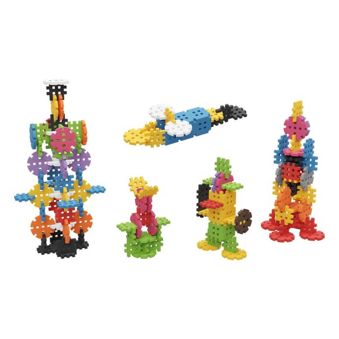 Postoji li nešto bolje od omiljenih MIDI WAFFLE blokova za najmlađe? Možda samo MIDI WAFFLE set upotpunjen CONSTRUCTION WHEELS – posebno dizajniranim okruglim dodacima za daljnje povećanje mogućnosti kreativne gradnje! Uz slikovne inspiracije, koje mladim graditeljima pomažu u izgradnji atraktivnih 2D i 3D oblika i formi, u set smo uvrstili i matematičke zadatke, pretvarajući ovaj Waffle set u korisno obrazovno sredstvo. Na taj način igra s blokovima ne samo da podupire prirodni razvoj djeteta i manualnih vještina, već i pomaže pri učenju brojanja i logičnom razmišljanju.