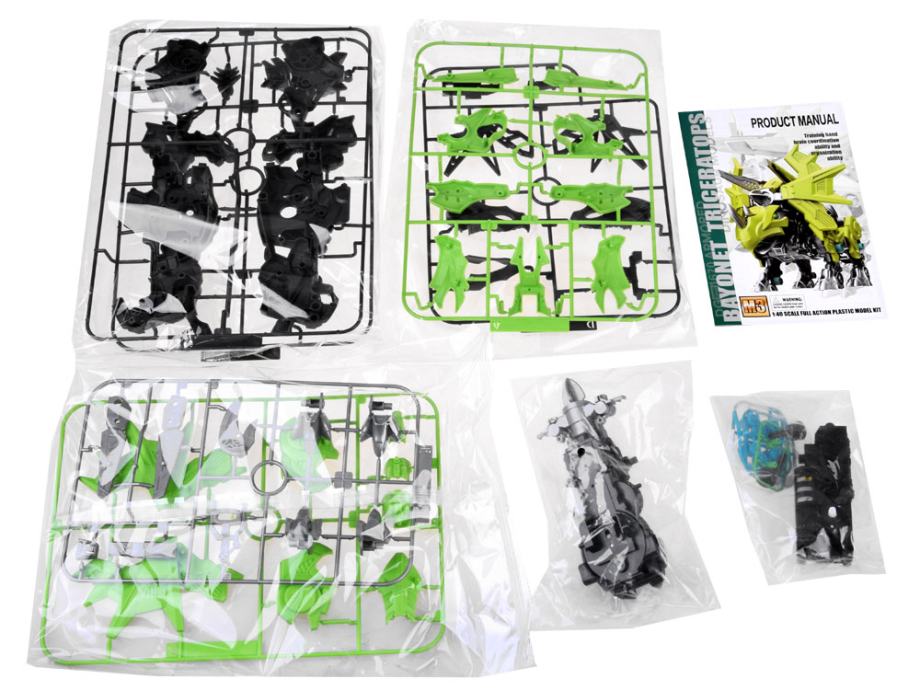 Uključeno: - elementi za izgradnju triceratopsa, - 2 mehanička elementa, - slikovno uputstvo. Svi elementi za uređenje makete izrađeni su od visokokvalitetne plastike intenzivnih boja. Elemente nije potrebno lijepiti, samo ih pravilno spojiti da "kliknu". Slaganje modela pozitivno utječe na koncentraciju, prostornu maštu i motoričku spretnost. Nakon dogovaranja, naš robotski dinosaur hoda, može napadati protivnika oružjem u rufi. Igračka će odlično izgledati i u dječjoj sobi.