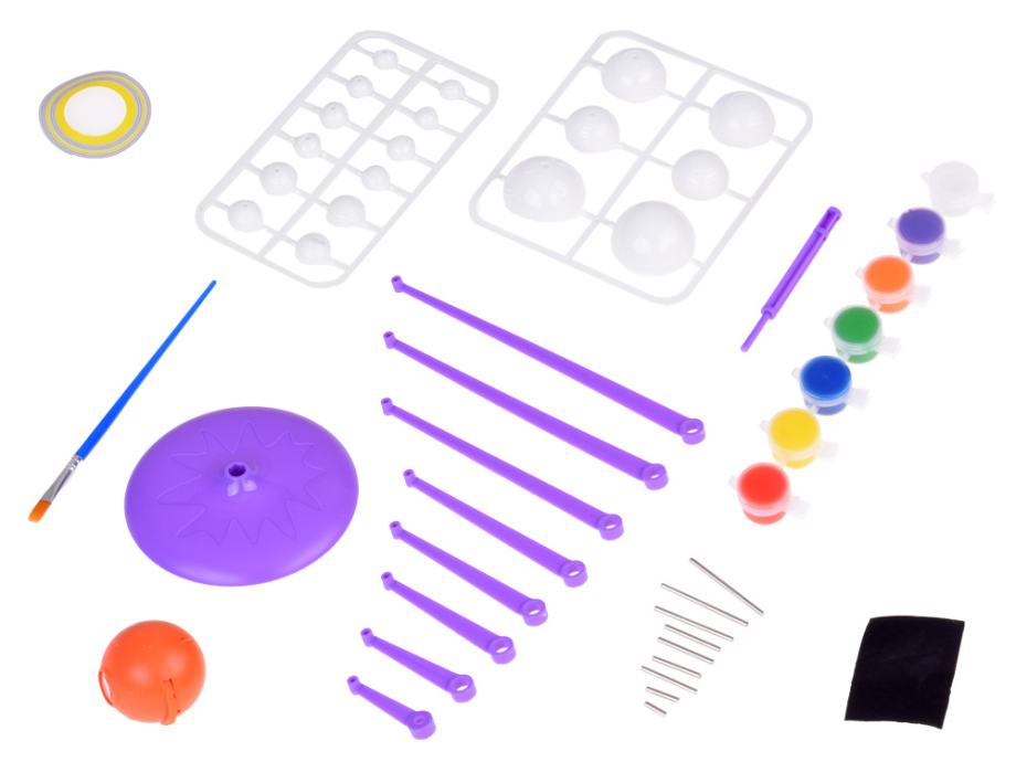 - Sklopivi planeti - Svaki planet se sastoji od dva dijela koji se samo uvlače jedan u drugi, što eliminira potrebu za korištenjem ljepila. Ovo jednostavno rješenje čini montažu jednostavnom i brzom, a model solarnog sustava spreman je za bojanje u kratkom vremenu.