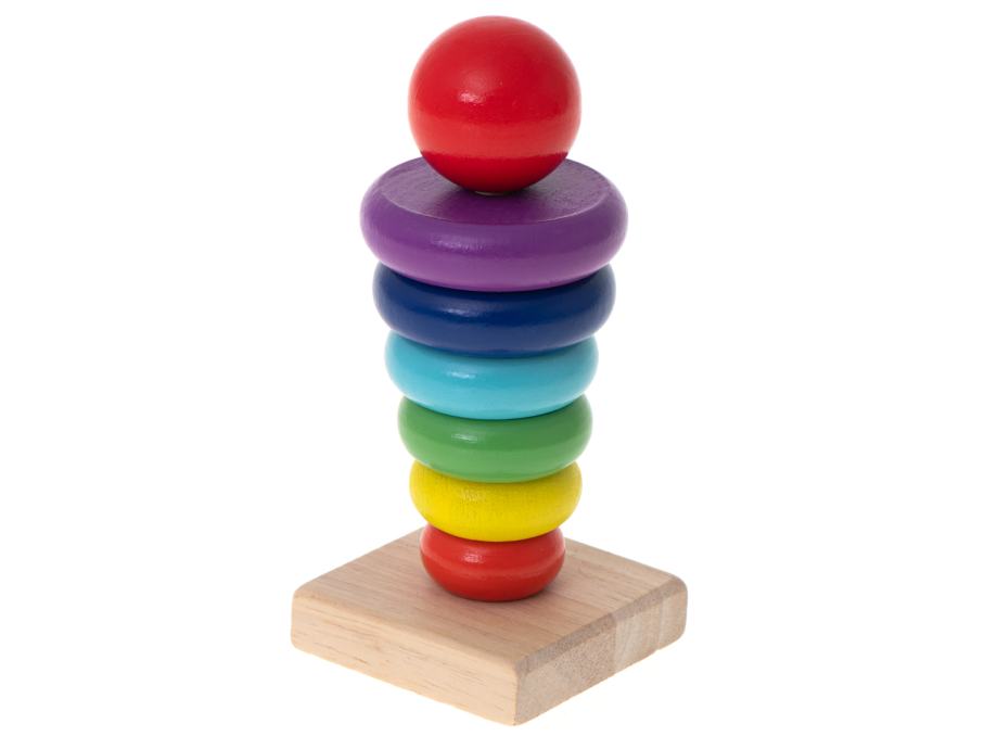 MONTESSORI DRVENA PIRAMIDA ŠARENIH OBRUČA 13cm