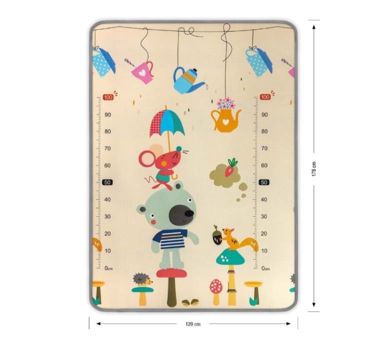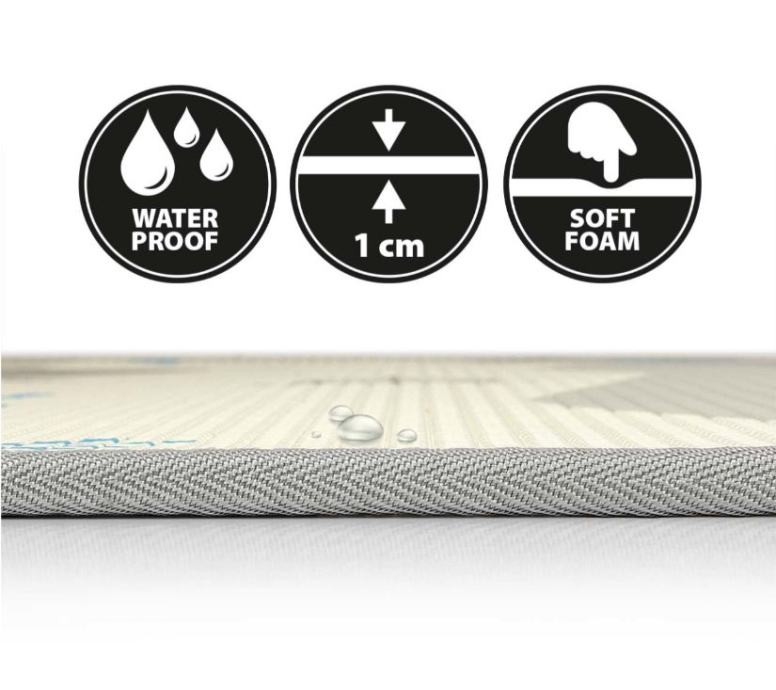 Podloga za igru je dvostrana, izrađena je od kvalitetnog, laganog i čvrstog materijala, antialergijska je i ne klizi. Podloga jamči udobnost i sigurnost za našu djecu dok se igraju. Podloga ima kreativne boje i prekrasan dizajn zahvaljujući tome potiče našu bebu na igru i više aktivnosti. Njegova kvaliteta i velika fleksibilnost uzrokuju da su naša djeca sigurna dok padnu. Zahvaljujući vodootpornosti, savršeno štiti pod od hladnoće, lako se čisti i čini ljepšu površinu u dječjoj sobi.