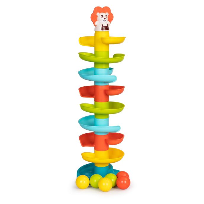 Toranj s upletenim toboganom za lopte odlična je igračka za najmlađe koji će rado promatrati i naganjati lopte. Upravljajući njima razvijat ćete motoričke i manuelne vještine, zahvaljujući kojima ćete spojiti zanimljivu zabavu s održivim razvojem djeteta.