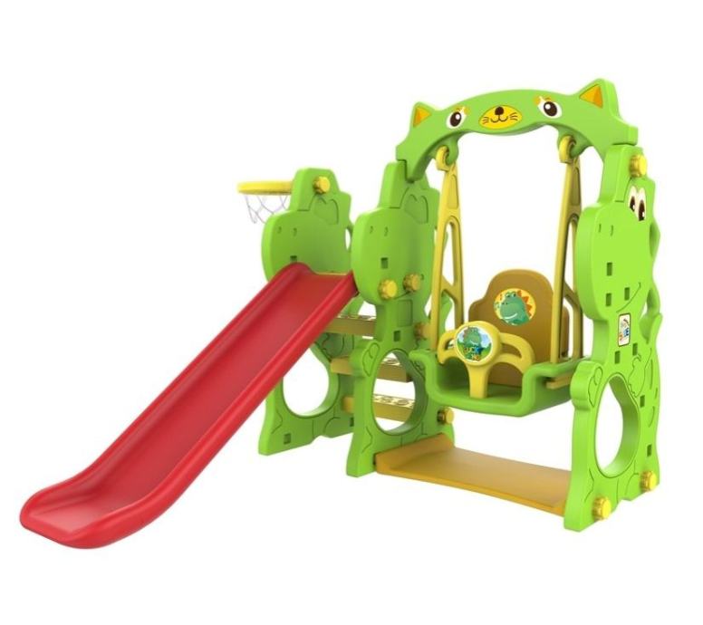Komplet uključuje dugačak i širok tobogan sa stabilnom konstrukcijom zahvaljujući kojem se lako penje na vrh. Sa strane je obruč za košarku. Komplet uključuje ljuljačku čije je sjedalo opremljeno udobnim naslonom i prednjom zaštitom koje se po potrebi može ukloniti.