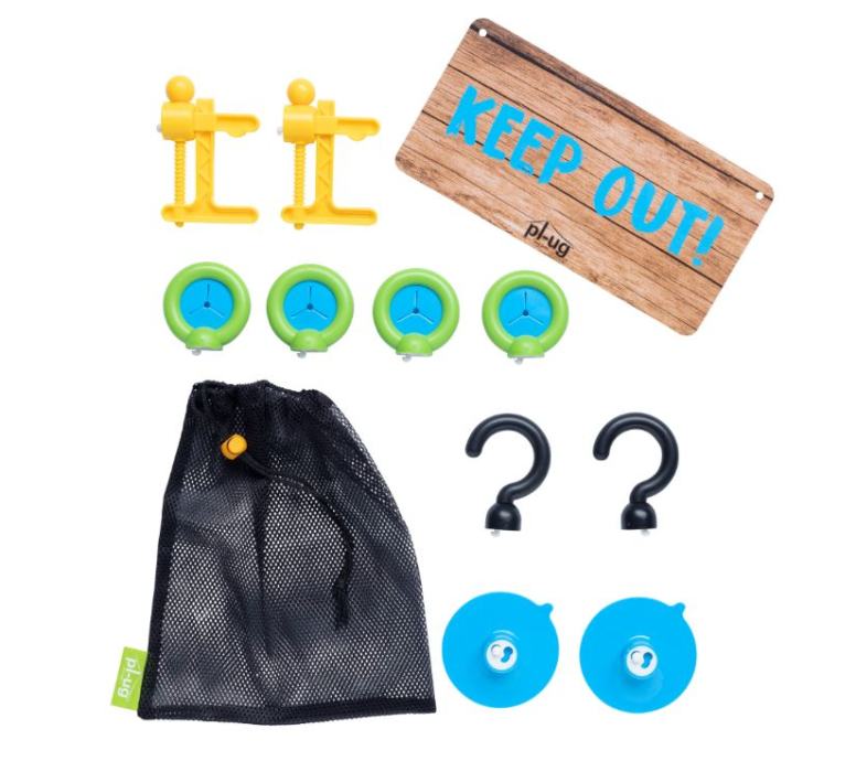 PL-UG dodaci olakšavaju izgradnju šatora, utvrda. Svi PL-UG dodaci se međusobno spajaju patentiranom PL-UG spojem. Uvijek imate savršen alat za izgradnju svog šatora, u dvorištu ili u kući. Pričvrstite PL-UG na gotovo sve, unutara ili vani.