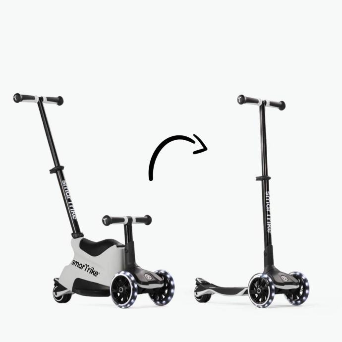Za najmlađe vozače tu je dodatno sjedalo koje im pruža stabilnost za vrijeme razvijanja ravnoteže. Kada djeca savladaju samostalnu vožnju, sjedalo se može ukloniti, a guralica se pretvara u romobil na tri kotača.