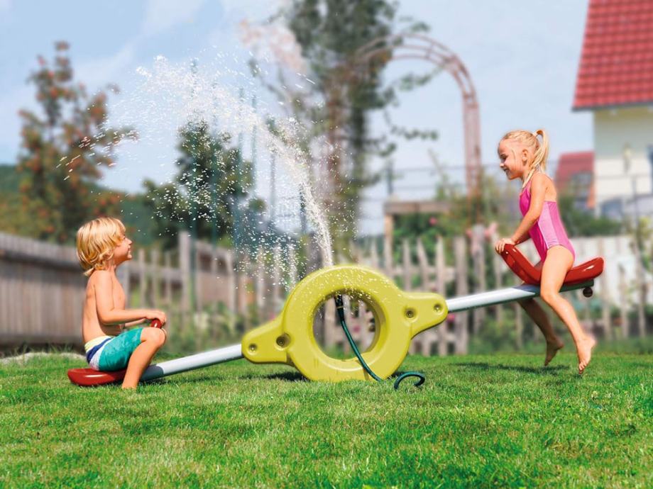 Ljuljačka za ravnotežu, koja se sastoji od dva sjedala, može primiti do 50 kg tereta po sjedalu. U toplim i sunčanim danima možete uživati u dodatnoj funkciji prskanja vodom spajanjem vrtnog crijeva. Savršena za djecu stariju od 3 godine, ova ljuljačka bit će izvrstan dodatak svakom kućnom igralištu.