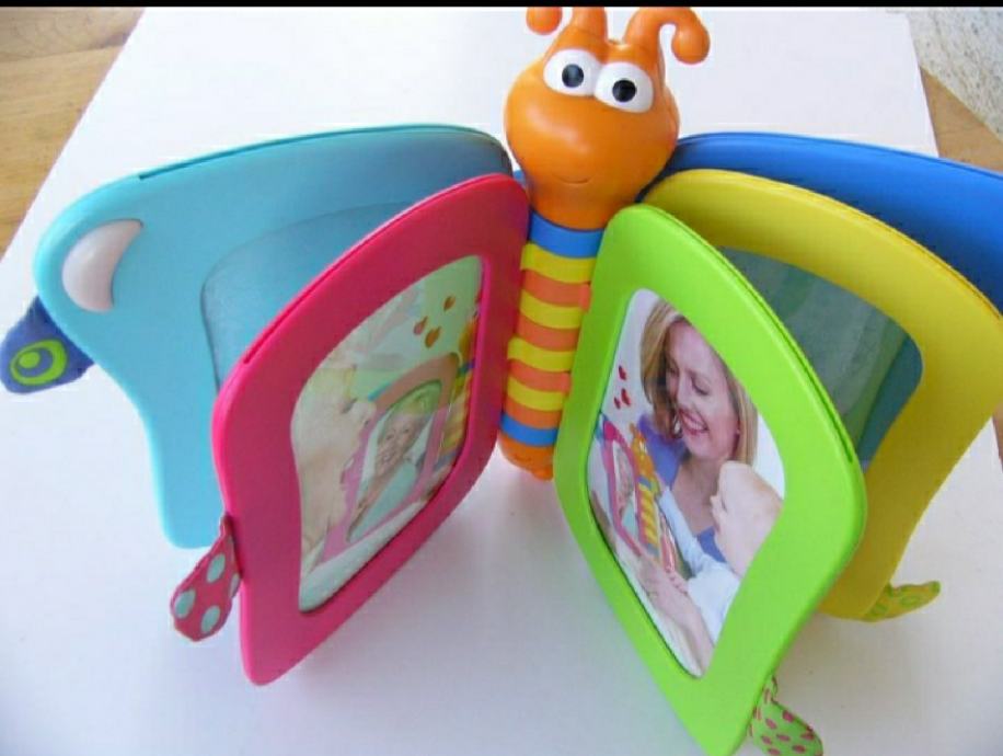 U svaki okvir se stavi fotografija drage osobe (mama,tata,baka...) i moze se uz svaku fotografiju snimiti zvuk tj.poruka od te osobe.Tako dijete povezuje sliku i zvuk.Zvuk se automatski pali kako se otvori stranica albuma.Lijepog oblika leptira.