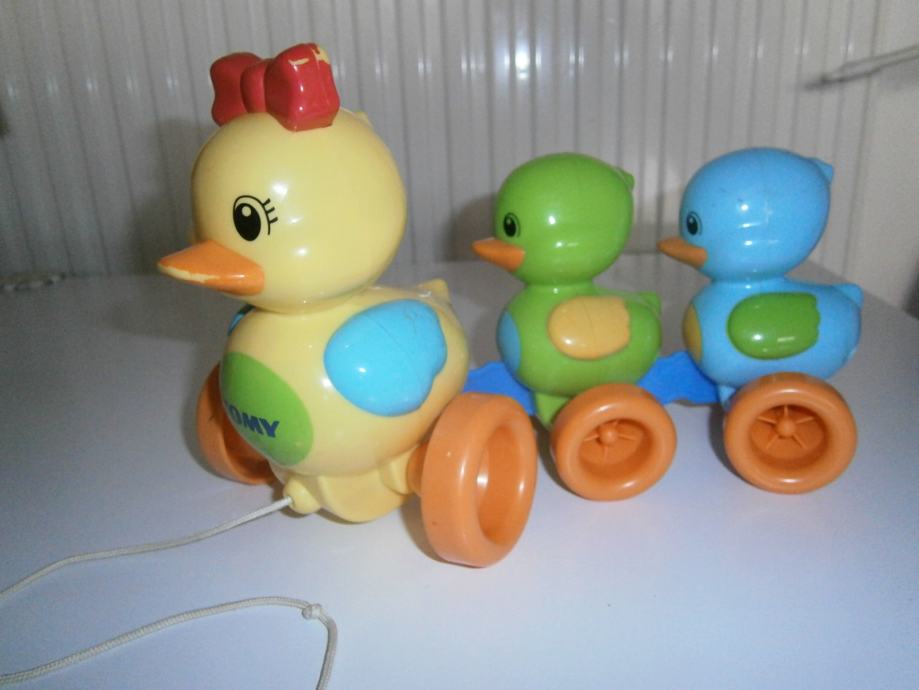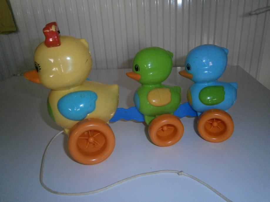 Patkice na kotačima koje dijete može vući za sobom i voditi ih u šetnju. Kad se povlači konopac, čuje se zvučni efekt. Idealno za djecu koja rade prve korake. Igračka je u potpunosti očuvana.
