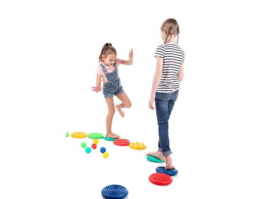 - Zahvaljujući hodanju po diskovima Vaše dijete razvija ravnotežu, motoričku koordinaciju, prostorno planiranje. Istodobno se kod djeteta normalizira mišićna napetost, što može pozitivno utjecati na poboljšanje držanja i otklanjanje nedostataka stopala, poput valgusa ili ravnog stopala.