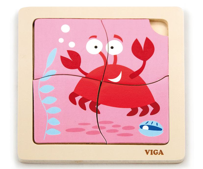Šarena i vrlo jednostavna slagalica za bebu iz Vige u obliku raka. Set sadrži četiri elementa koja se postavljaju na drvenu podlogu. Kada dijete pravilno spoji oblike, stvorit će se slagalica s novim prijateljem.