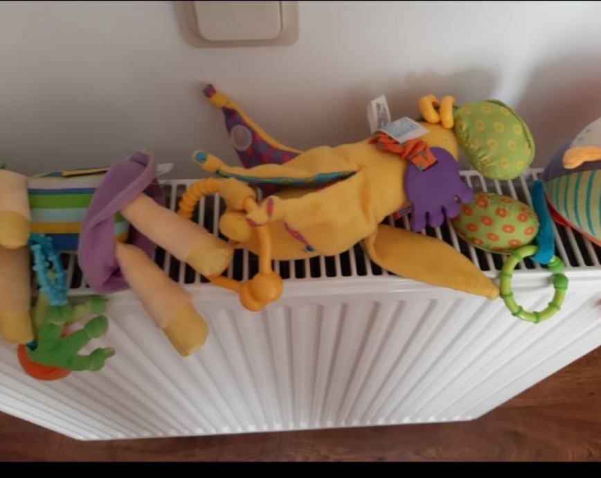 Viseče zvečke za bebe,mogu se staviti na kolica ili krevetič. Kao nove,kupljene u bebicentru. Cijena po komadu 10 eura za sve 30 eura. Mogučnost slanja poštom ili tiskom.