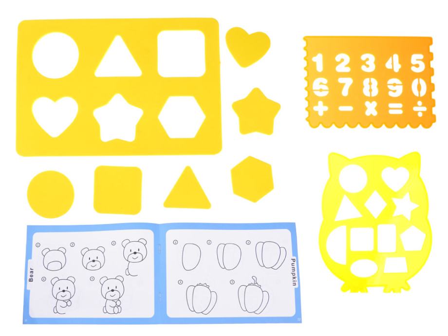 - 4 x šablone s raznim uzorcima (geometrijski likovi, brojevi)