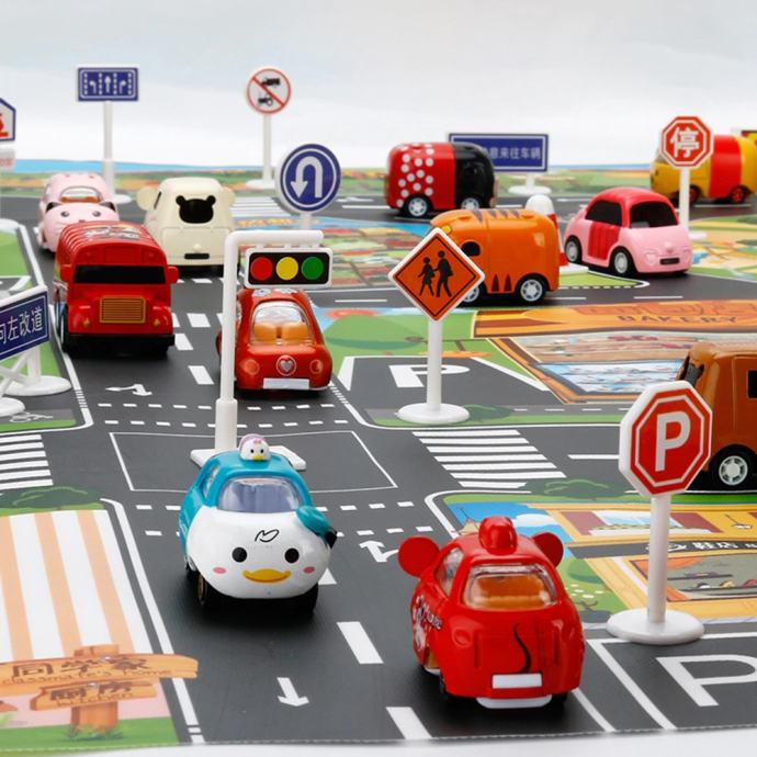 Vodootporna podloga za igru ulice grada s prometnim znakovima 130x100c