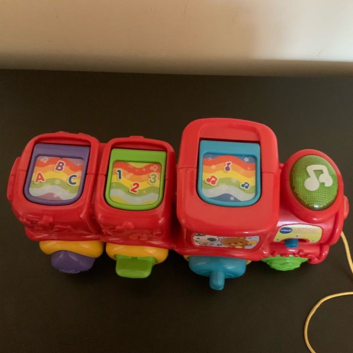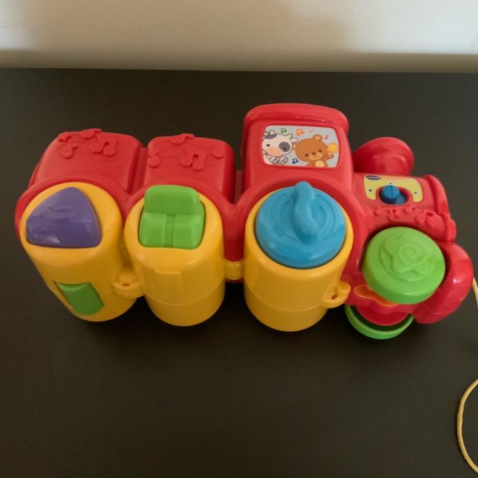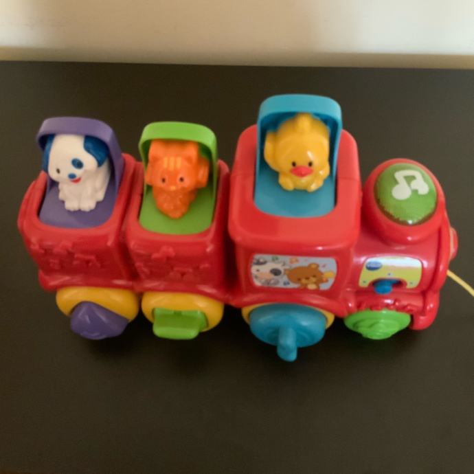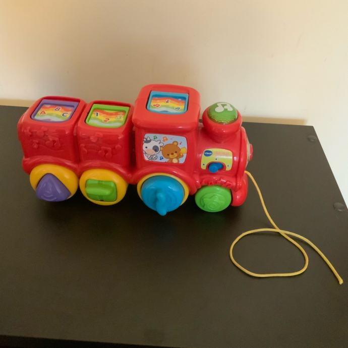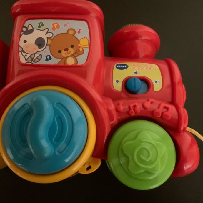 Prodajem Vtech vlak sa životinjama. Pokretenjem određenih gumbi životinje se dižu i uče se pojmovi o određenoj životinji.