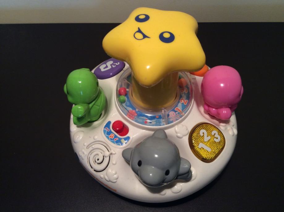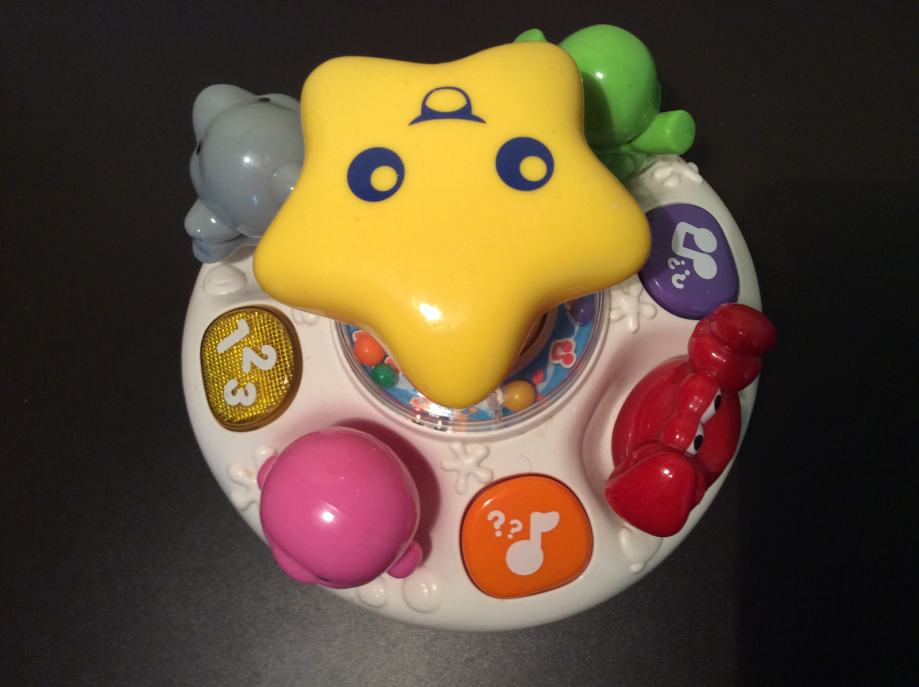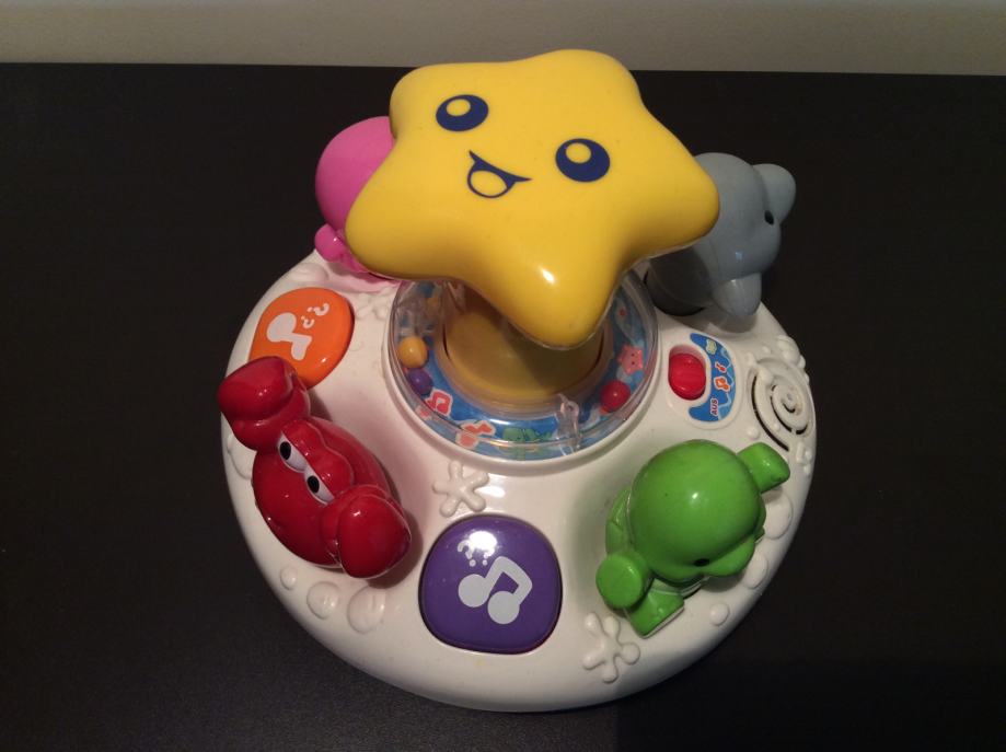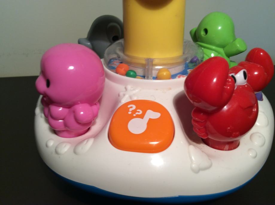 Pritiskom na žutu tipku vrtuljak sa životinjama se okreče.