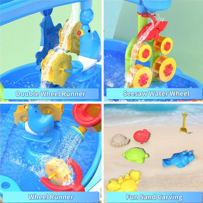 Jedinstvena vodena ploča marke WOOPIE savršen je način da se dobro zabavite tijekom cijele godine, bez obzira na vremenske prilike. Ovo nije samo fantastična zabava u vrućim danima, već i odličan način da pobijedite dosadu kada vrijeme zahladi. Ovaj jedinstveni stol ima napredan sustav vode u 3 razine koji će zasigurno oduševiti svako dijete! Mali istraživači mogu pomoću kante za zalijevanje natočiti vodu u gornju komoru, a zatim gledati kako slap teče u donji spremnik, pokrećući vodeni kotač. Osim toga, zahvaljujući priloženim dodacima, ovaj se stol također može koristiti za igru s pijeskom , običnim i kinetičkim , što ga čini svestranom igračkom za svaku priliku.