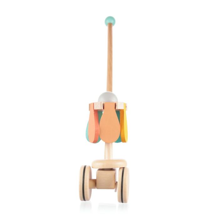 Drvena guralica idealna je igračka za djecu koja tek počinju hodati. Slatki cvjetić na dugom štapu otvara se, uvija i okreće pri kretanju. Čvrsti štap služi i kao oslonac pri prvim koracima, a na kraju se nalazi drvena kuglica za dodatnu sigurnost. Guralica nema oštrih rubova i izrađen je od izdržljivog, dugotrajnog drva.