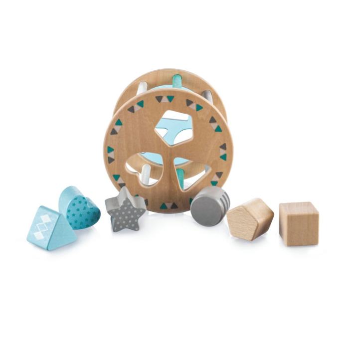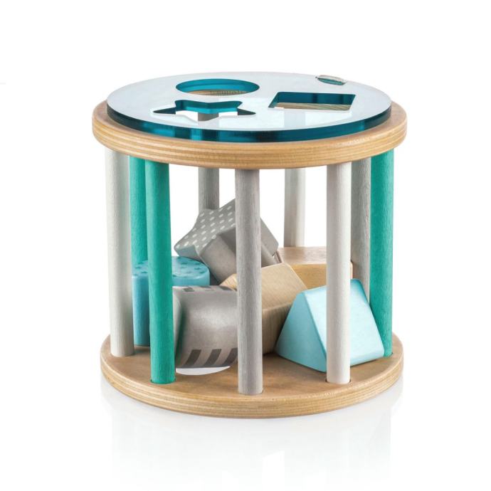Učenje treba biti igra, a to se odnosi i na razvoj koordinacije, motoričkih vještina i učenje novih stvari. Drvena slagalica sastoji se od 6 oblika različitih boja koji se umetnu u drveni cilindar. Dijete uči koordinirati pokrete očiju i ruku te upoznaje nove oblike i boje. Izrađeno je od prirodnog drveta i boja na bazi vode.