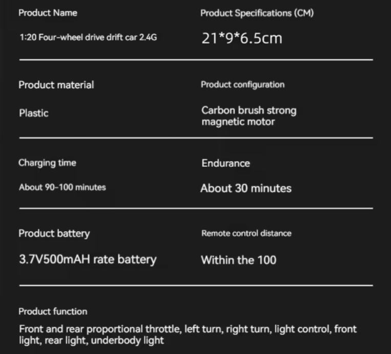 Veličina auta: duljina oko 21 cm, širina 7,5 cm, visina 5 cm