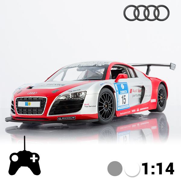 Nemojte propustiti autić na daljinsko upravljanje Audi R8 LMS, najpopularniji proizvod koji morate imati u svome domu. Ovaj autić na daljinsko upravljanje u omjeru 1/14 dolazi s prednjim i stražnjim svjetlima te sadržava 1 daljinski upravljač (radi na baterije, 1 x 6F22 9V, nije uključena) koji ima kontrole za kretanje lijevo, desno, naprijed i natrag. Autić radi na baterije (5 x AA, nisu uključene). Preporučena dob: 6 godina naviše.