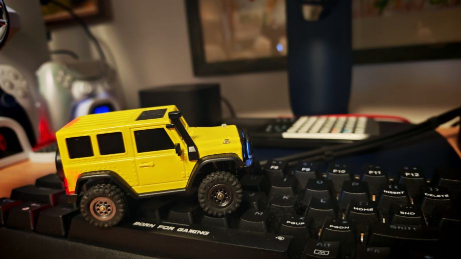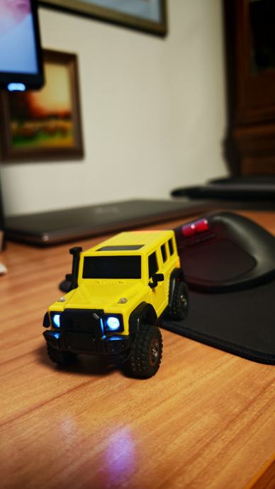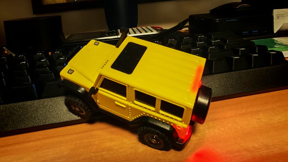 Minijaturni terenac sa daljinskim upravljanjem u omjeru 43:1. Koristen izuzetno kratko (niti jedno punjenje baterije) u sobnim uvjetima. Moguca zamjena za TRAXXAS defender u omjeru 10:1 uz moju doplatu ili ocuvane PS5 igre koje me zanimaju... Bez kutije i jamstva, potpuno ispravan.