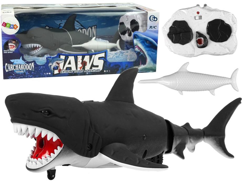 Igračka je izrađena od visokokvalitetne plastike. Svaki detalj, karakteristični bijeli zubi, oštra peraja na leđima, dugačak rep izazivaju strah. Velika prednost je infracrveni daljinski upravljač. Njime možete upravljati daljinskim upravljačem. Najveće iznenađenje je funkcija raspršivanja vode. Sa stražnje strane nalazi se rupa u koju treba uliti vodu, a kada pritisnete tipku na daljinskom upravljaču, morski pas će početi micati glavom i koristiti raspršivač.