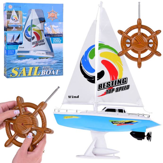 Jedrilica na daljinsko upravljanje Jedrilica na daljinsko upravljanje opcija je za svakog malog jedriličara. Prekrasna plava jahta s bijelim jedrima, kojom se upravlja daljinskim upravljačem u obliku volana s frekvencijom od 27MHz.