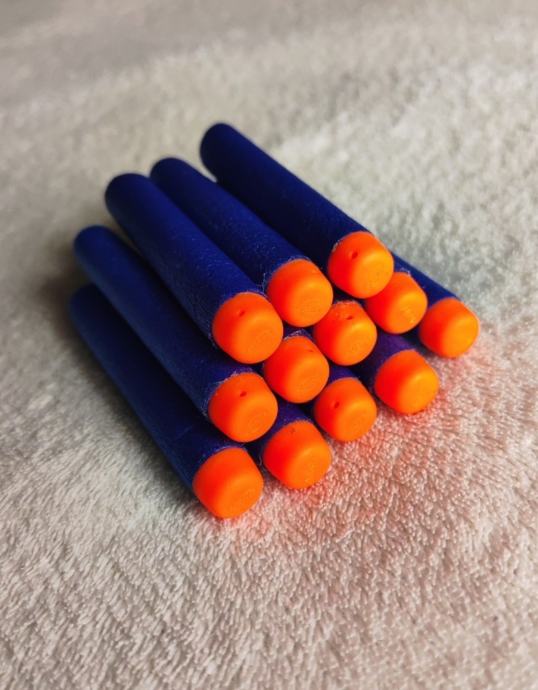 Na narančastom dio metaka ima se pečatirana oznaka Nerf, koja podtvrđuje kvalitetu
