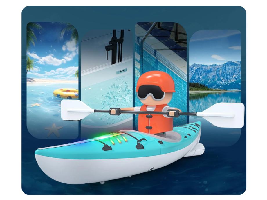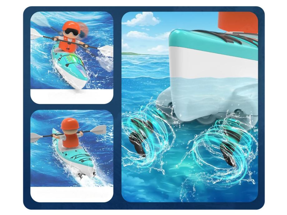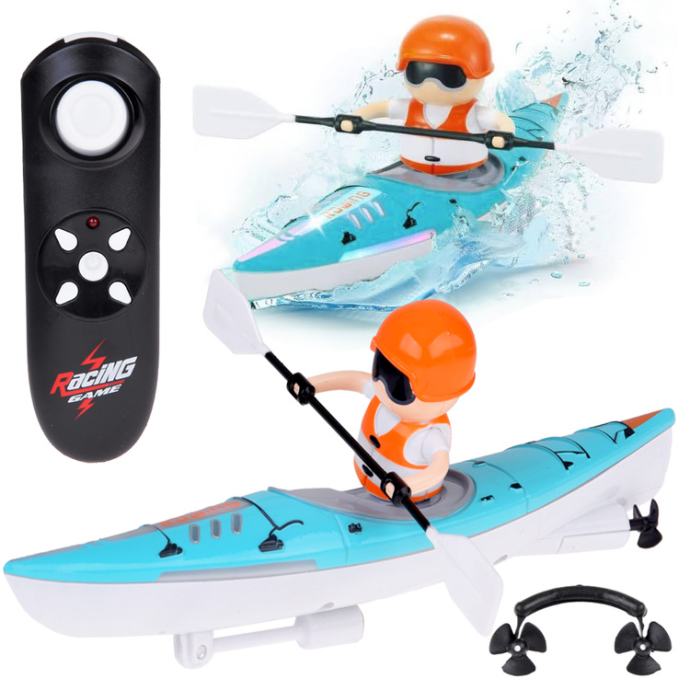 Igračka na daljinsko upravljanje, može pružiti sate zabave. Idealan je za igranje u bazenu, jezeru ili kadi. Kajak s veslačem također se može koristiti za učenje djece o kajakaškom sportu.