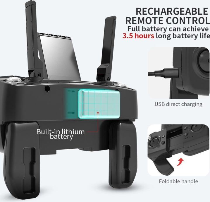 - ESC 4k HD širokokutna kamera. može se podesiti kut od 90° pomoću kontrolera.