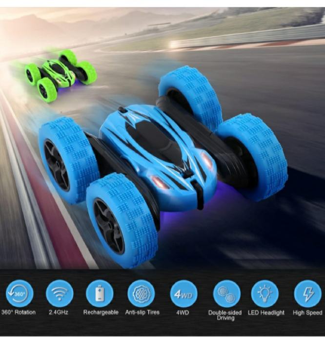 Potpuno funkcionalni Rc automobil: to je potpuno funkcionalni kaskaderski automobil s LED svjetlom, može ići naprijed/nazad, skretati lijevo/desno, ići bočno za 45°, okrenuti se za 180° i rotirati za 360°. Sva ta vrsta uzbuđenja dobro će iznenaditi vašu djecu, a ovo su najbolji božićni/rođendanski darovi za 3 4 5 6 7 8 9 10 11 12 godina stare dječake/djevojčice koji vole autiće ili utrke.