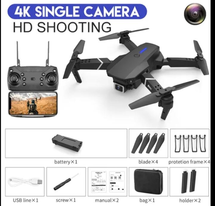 - Funkcije: gore / dolje, naprijed / nazad, lijevo / desno skretanje, bočni let, brzina leta u 3 koraka, LED svjetlo, način rada bez glave, automatski povratak jednom tipkom, način zadržavanja visine, WiFi FPV, putanja leta, kamera / video