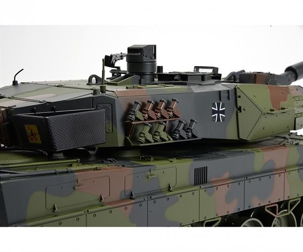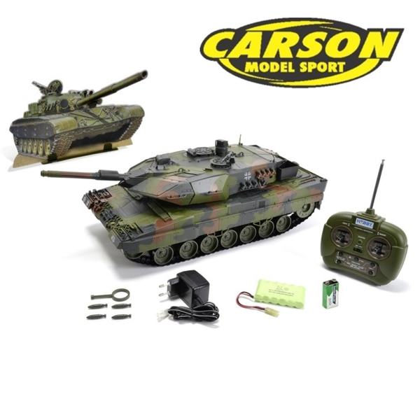 S funkcijom paljenja softguna mali projektili mogu se ispaliti do 1 metra. Snažni električni motori rukuju nagibima do 30 °, okreću kupolu, spuštaju i podižu glavnu cijev ili dopuštaju rotaciju na licu mjesta. Sve funkcije 100% potpuno opremljenog CARSON Leoparda 2A5 su daljinski upravljane pomoću 2.4G RC sustava.
