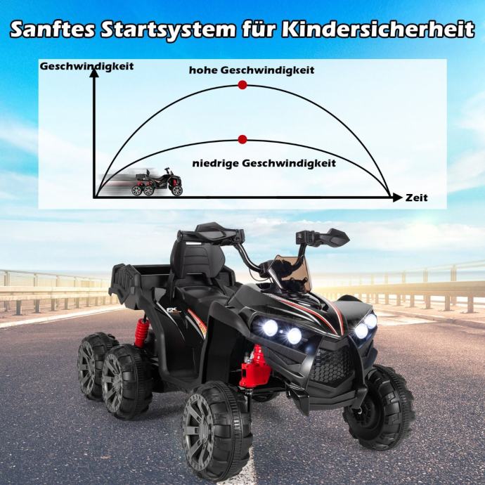 Jedinstveni sustav sporog pokretanja: Opremljen naprednom tehnologijom sporog pokretanja, naš četverotočkaš s nosivosti od 30 kg može početi s jednakom brzinom i izbjeći rizik od iznenadnog ubrzanja, što može osigurati sigurnost vaše djece. Tako se ne morate brinuti o ozljedama zbog naglog kočenja.
