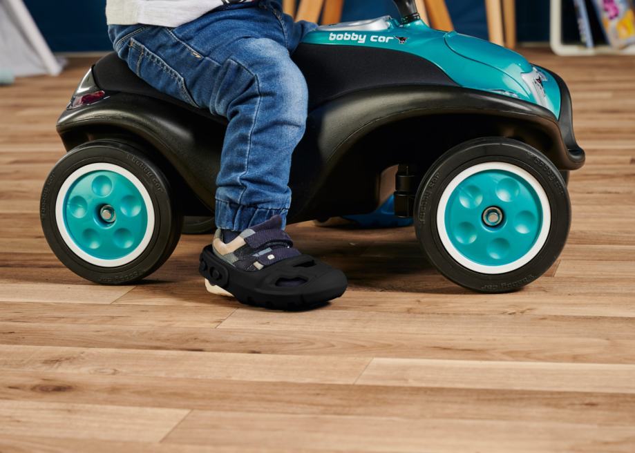 BIG Gumene navlake za cipele u crnoj boji pružit će savršenu zaštitu cipelama vašeg djeteta tijekom vožnje na ride-on. Punom brzinom naprijed! Zahvaljujući VELIKIM štitnicima, cipele vašeg djeteta bit će zaštićene od oštećenja tijekom intenzivne vožnje, npr. tijekom snažnog kočenja ili kretanja po kamenitom terenu. Štitnici su izrađeni od mekanog materijala koji se lako postavlja - ne ostavljaju tragove!