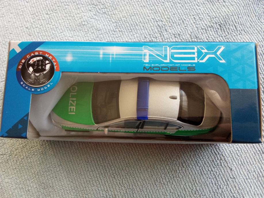 Bijele boje sa zelenim površinama, natpisom Polizei i plavom rotirkom.