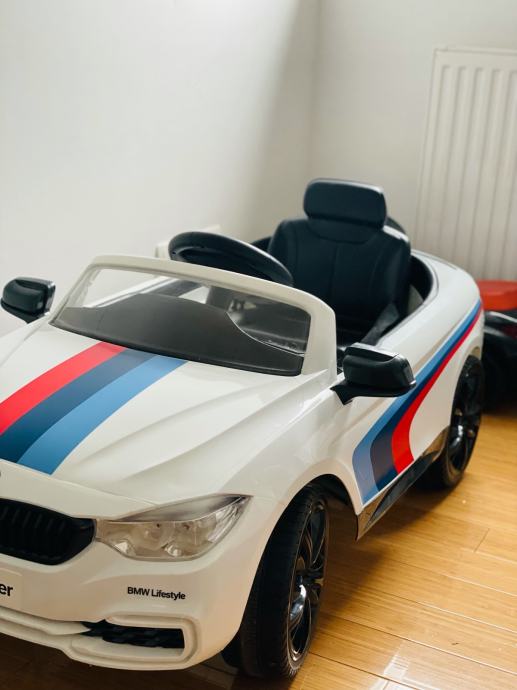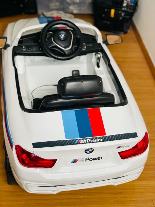 BMW originalni motorsport električni automobil za djecu M4 Sport Ride-On, bijeli 12V. Broj modela: 80932413197.