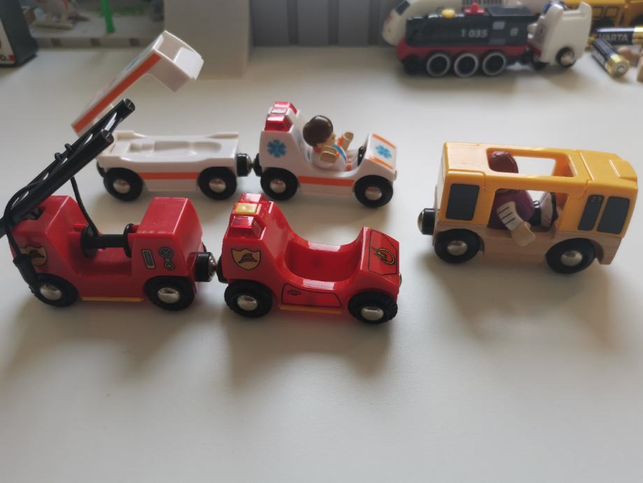 Dvije lokomotive na baterije koje samostalno voze, obična lokomotiva, razni vagoni, vatrogasci, hitna, cargo stajaliste, pruzni orijelaz, garaza za vlak, skretnica sa semaforom, trajekt, autobus, i razne pruge s mostom. Uz to su i pruge iz IKEA-e.