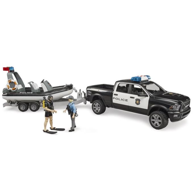 Bruder RAM 2500 policijski kamionet s svjetlosnim i zvučnim modulom, prikolicom, čamcem i 2 figurice