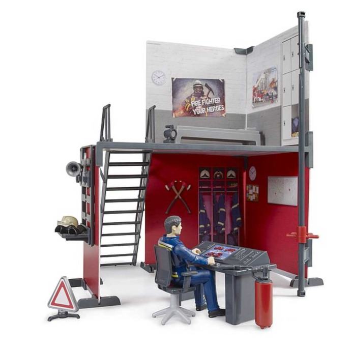 Bruder set Vatrogasna stanica sa kontrolnom pločom, alatom, kat za spavanje, figuricom i šipka za spuštanje