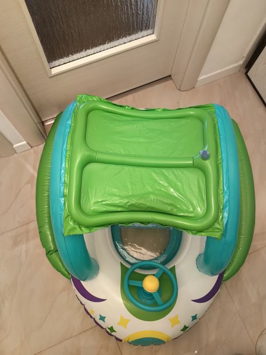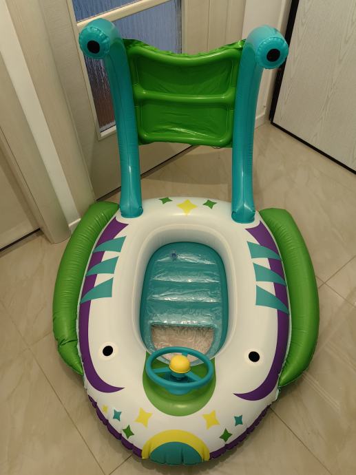 Dječji čamac s volanom, trubom i nadstrešnicom, dimenzije na slici kutije, nije probušen.