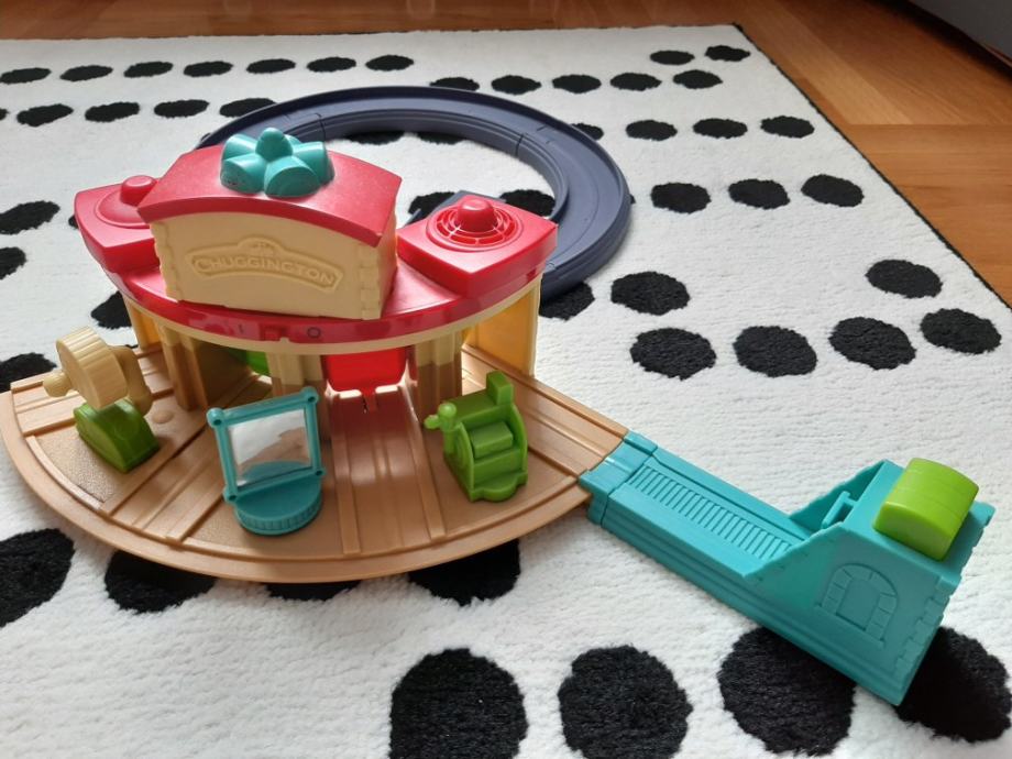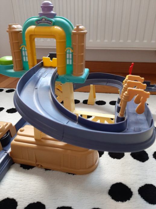 Prodajem chugginngton postaju(izbacuje vlakice,zvukovi), 5 chuggija i prugu takoder na baterije.