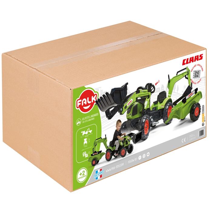 Traktor Farmer s prikolicom CLAAS marke Falk ostvaren je san mnogih malih traktorista. Pažljivo izrađena , s pažnjom na najmanji detalj! Nijedan farmer ne bi prezreo takvo što. Vozilo na pedale je savršen poklon za svako dijete. Najnoviji dječji traktor CLAAS sa žlicom , utovarivačem i prikolicom izrađen je od visokokvalitetne plastike . Vozilo je namijenjeno djeci od 2 godine starosti . Ovaj model će se svidjeti svakom mladom vozaču traktora, vozilo je napravljeno u originalnim bojama .
