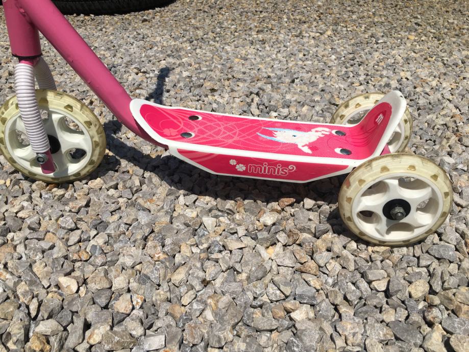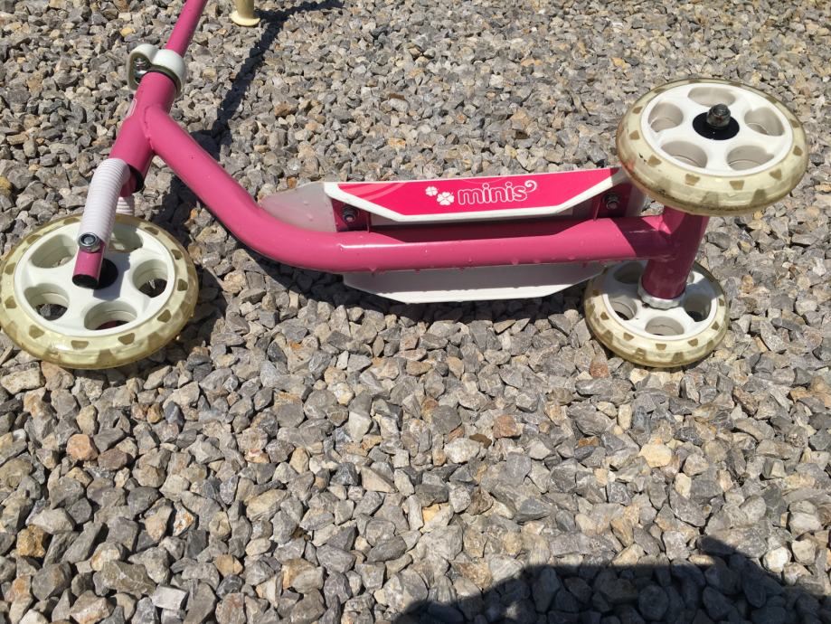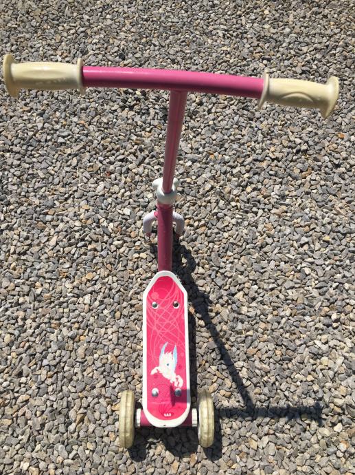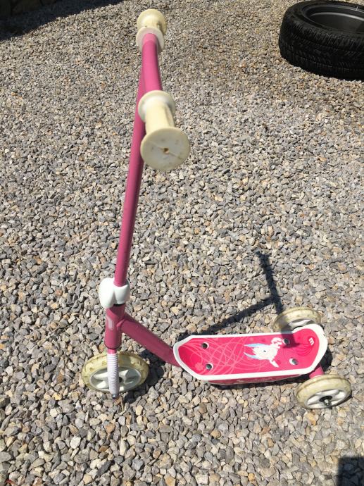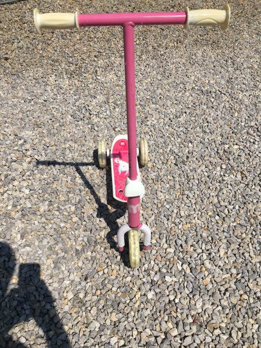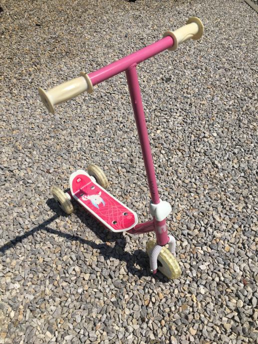 prodajem dječjin crveno-rozi romobil za curice s tri kotača
