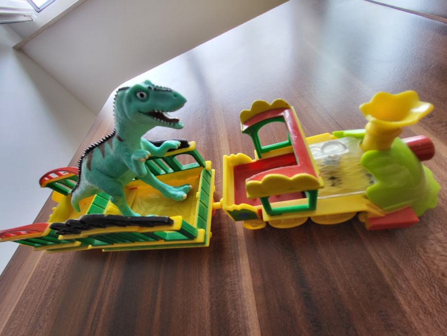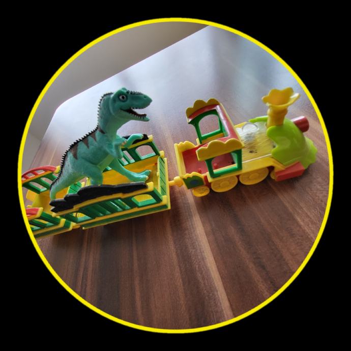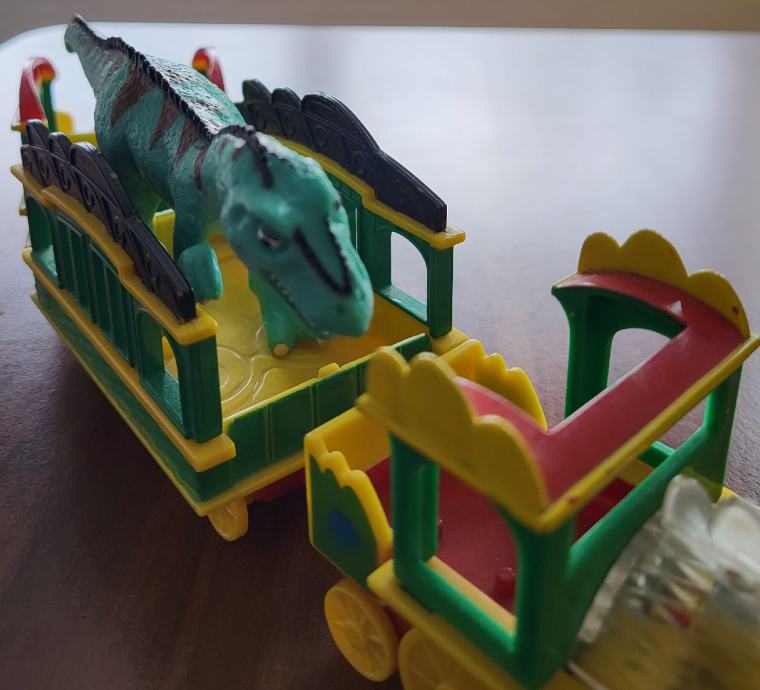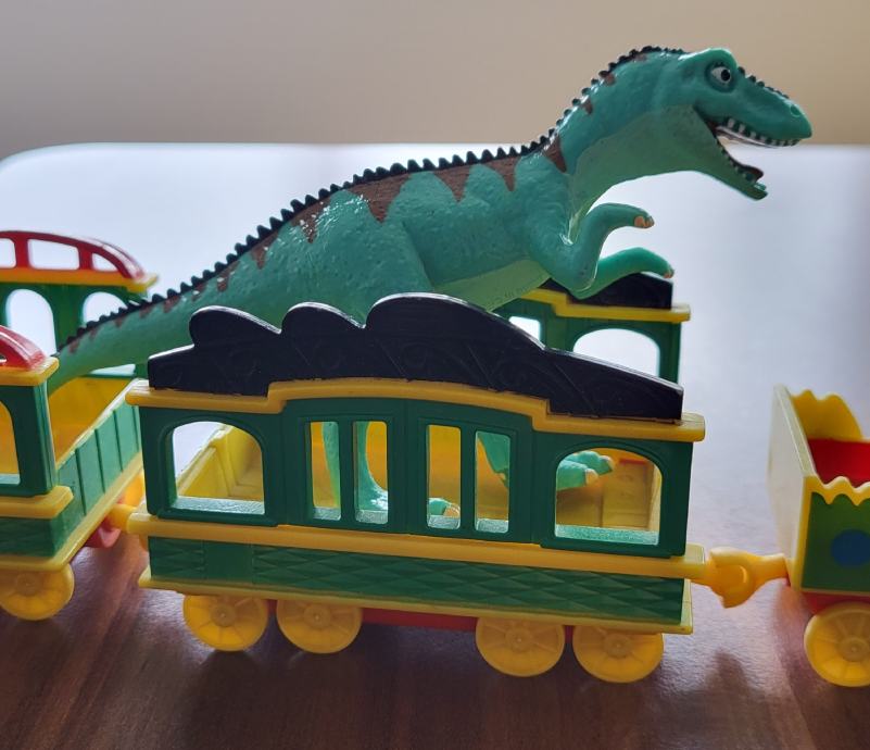 Prodajem "Dinosaura vlak" dječju igračku. Vlakić sadrži mehanizam s baterijama, koji na pritisak dimnjaka proizvodi djeci zabavne zvukove.