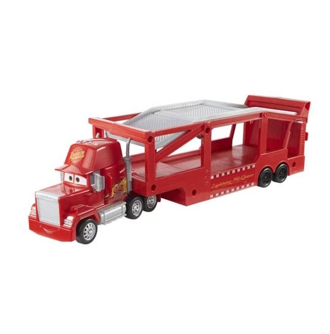 With Disney and Pixar Cars Mack Hauler vehicle, no racer gets left behind! This Mack is 13 inches long and can hold 12 character cars (sold separately). Open the back of his carrier to load and unload; the upper deck lowers to become a long ramp for easy access to the top. When everyone's loaded, push to get the adventure rolling! Kids and Cars fans can recreate favorite scenes and make up new adventures as they let their imaginations wander the open road! Colors and decorations may vary.Take the whole Cars gang on the road with the Disney and Pixar Cars Mack Hauler vehicle!The 13-inch transporter truck has room for 12 Cars character vehicles on its two levels (cars sold separately)!Open the back of the car carrier to create a ramp that can be used to roll cars directly onto the first deck or race off into action!Lower the upper level to transform it into a ramp for easy loading and fast unloading!With room for so many fan-favorites and endless storytelling fun, Mack Hauler makes a great gift for kids and Cars fans ages 3 years old and up!