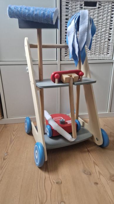 Lijepi i zanimljiv drveni set za igru spremanja i čišćenja.